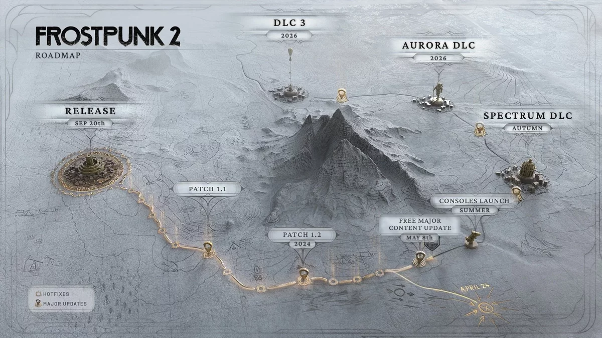 Frostpunk 2 вышла 20 сентября 2024 года на PC, а 18 сентября 2025 года добралась до консолей PlayStation 5 и Xbox Series X/S. Игра получила 85/100 баллов на Metacritic и 75% положительных отзывов в Steam. Согласно дорожной карте, в 2026 году проект получит ещё два дополнения.