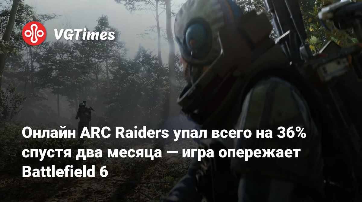 У ARC Raiders после громкого октябрьского релиза онлайн закономерно пошёл на спад — по данным Steam, количество одновременных игроков уменьшилось примерно на 36,8% от пикового значения. Тем не менее, игра Embark Studios остаётся одним из самых массовых мультиплеерных проектов в сервисе.
