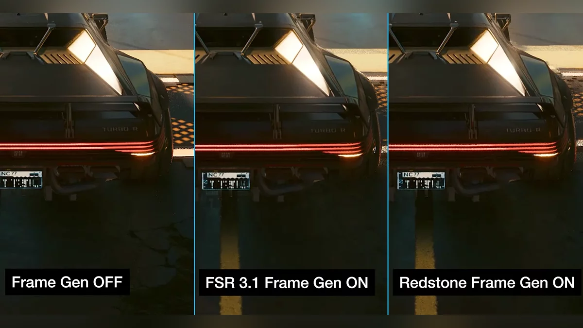 Эксперты провели тщательный анализ изображения в двух играх: Cyberpunk 2077 и Marvel Rivals, сравнивая FSR Redstone и FSR 3.1 в идентичных сценах. В Cyberpunk 2077 новая ML-модель генерации кадров показала себя лучше в ряде ситуаций, так в сценах с быстрым движением автомобиля FSR 3.1 демонстрировал выраженные «призрачные» шлейфы. Redstone практически полностью устранил этот артефакт.