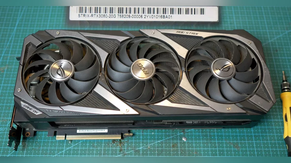 На китайском вторичном рынке обнаружена редкая видеокарта, которая официально так и не поступила в продажу. Речь идёт о модели ASUS ROG STRIX RTX 3080, которая оснащена 20 ГБ памяти вместо стандартных 10 ГБ.