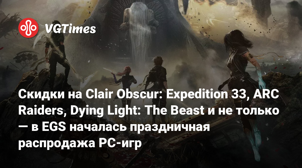 Новости Игровые новости Распродажи акции и скидки Скидки на Clair Obscur: Expedition 33, ARC Raiders, Dying Light: The Beast и не только — в EGS началась праздничная распродажа PC-игр