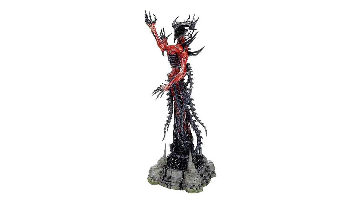 Внушительная 68‑сантиметровая фигурка выполнена из полирезины и пластика, весит более 9 кг (21.6 фунтов) и стоит $700 (около 56 тыс руб). Модель передаёт узнаваемый образ владыки Ненависти из грядущего сюжетного дополнения: скелетированный торс, изогнутые рога и «шипастый» силуэт над детализированным постаментом, задуманным как мрачный центр любой коллекции.