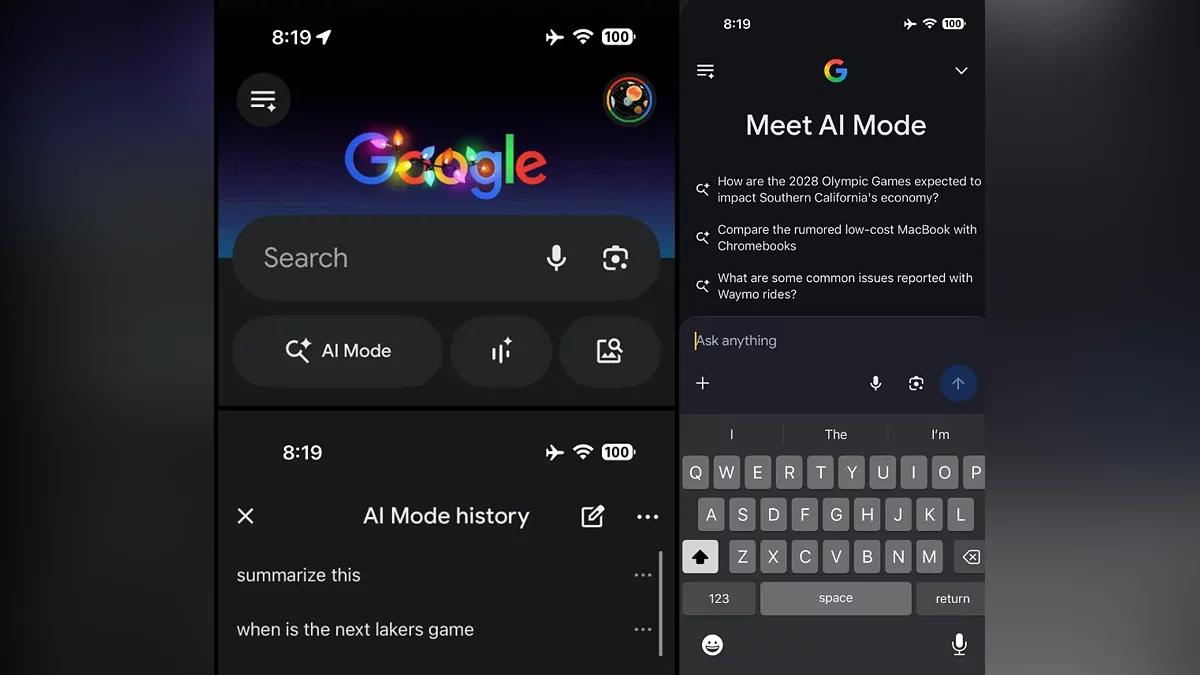 Параллельно Google вносит точечные изменения и в мобильные приложения. В версии для iOS на вкладке «Главная» вместо значка Google Labs теперь отображается кнопка, открывающая историю запросов в ИИ-режиме, на устройствах Android аналогичная функция пока отсутствует. Также на главной странице AI Mode кнопка доступа к истории перемещена в левую часть, а элементы управления «Назад» и «Закрыть» — в правую.