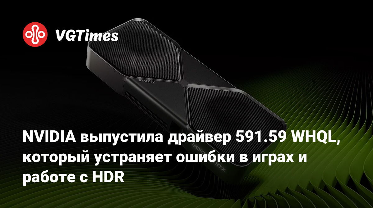 NVIDIA выпустила драйвер 591.59 WHQL, который устраняет ошибки в играх и работе с HDR