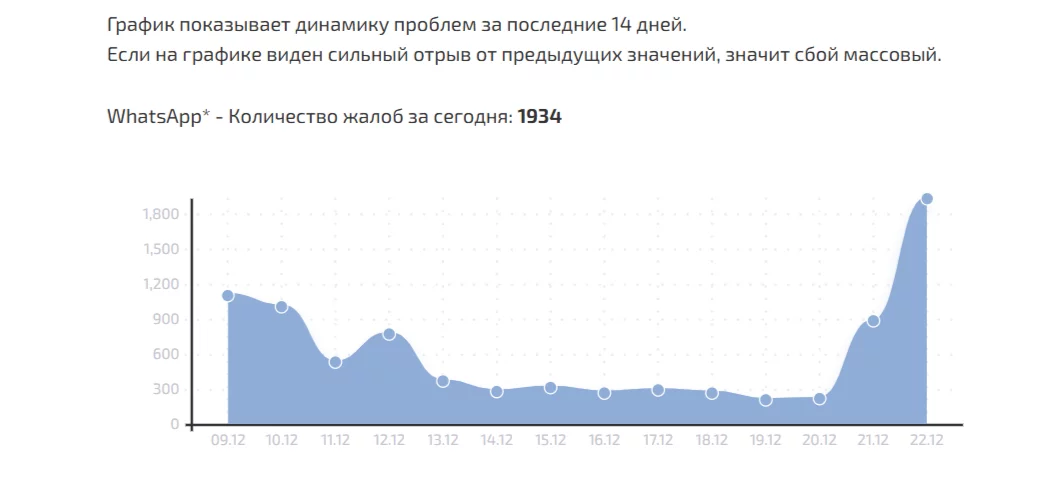 Россияне массово жалуются на работу мессенджера WhatsApp*. Специализированные сайты фиксируют множество обращений за последние сутки, значительная часть жалоб приходит из Москвы, сообщает «РБК».