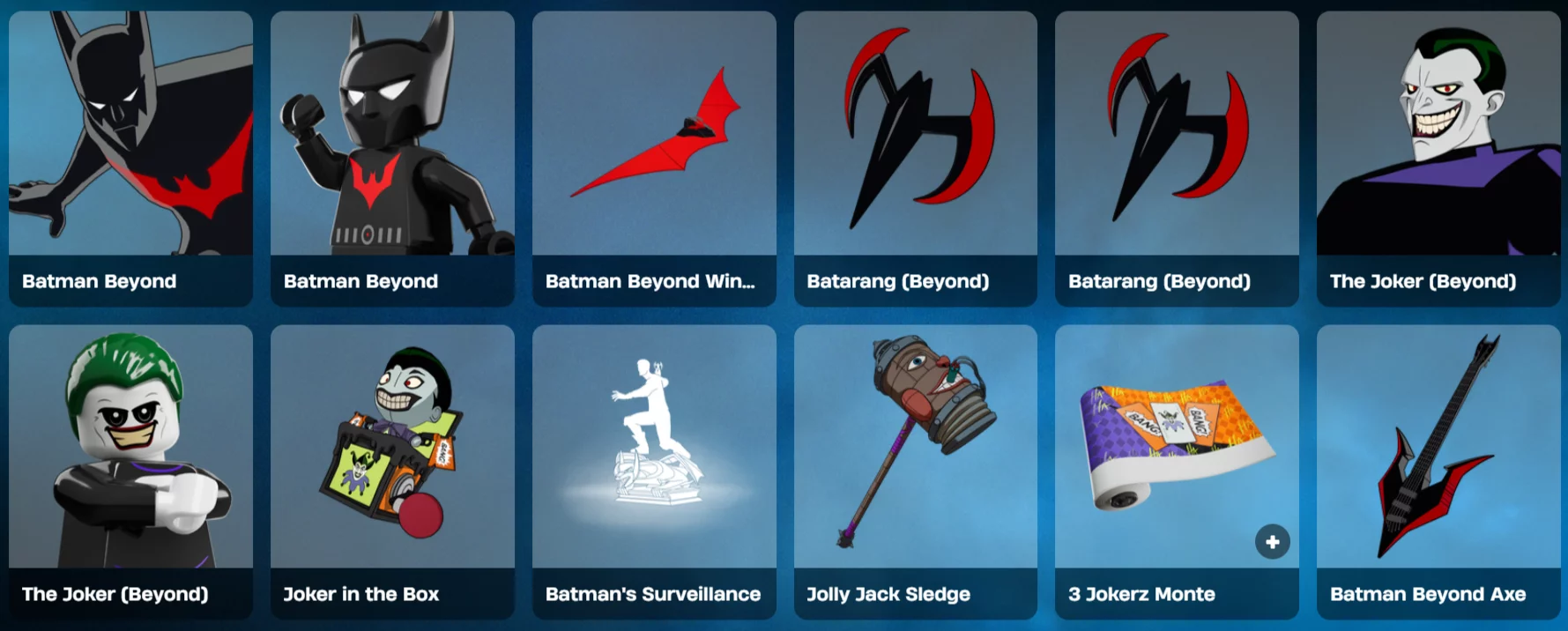Студия Epic Games добавила в Fortnite скины Бэтмена и Джокера из мультсериала «Бэтмен будущего» (Batman Beyond). Герои из кроссовера с вселенной DC уже появились во внутриигровом магазине.