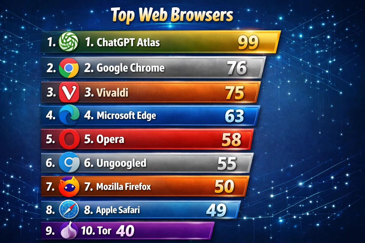 Рейтинг браузеров по безопасности данных возглавили Tor и Brave, а Chrome и ChatGPT Atlas оказались в аутсайдерах