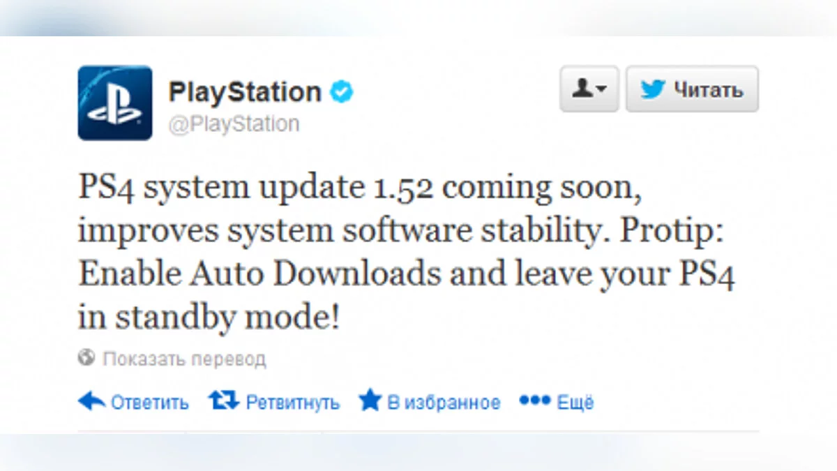 Согласно заявлению Sony в Твиттере, прошивка 1.52 улучшает стабильность системы и системных приложений. Разработчики рекомендуют активировать автозагрузку и оставить консоль в режиме ожидания.