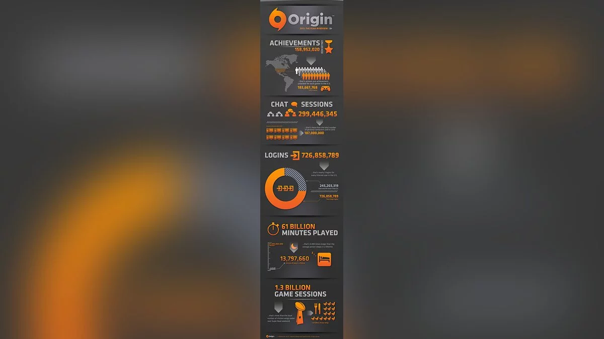 Издатель видеоигр компания Electronic Arts выпустила инфографику, в которой описала достижения пользователей Origin за 2013 год.