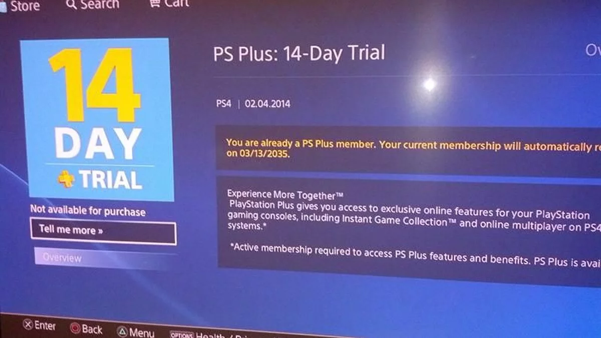 Источник, имя которого по понятным причинам не называется, сообщил, что наткнулся на ошибку при попытке перейти к вкладке PS Plus в PlayStation Store и нажать на 14-дневный пробный период, оформленный в стиле ужастика Outlast. Данное предложение недоступно уже существующим подписчикам.