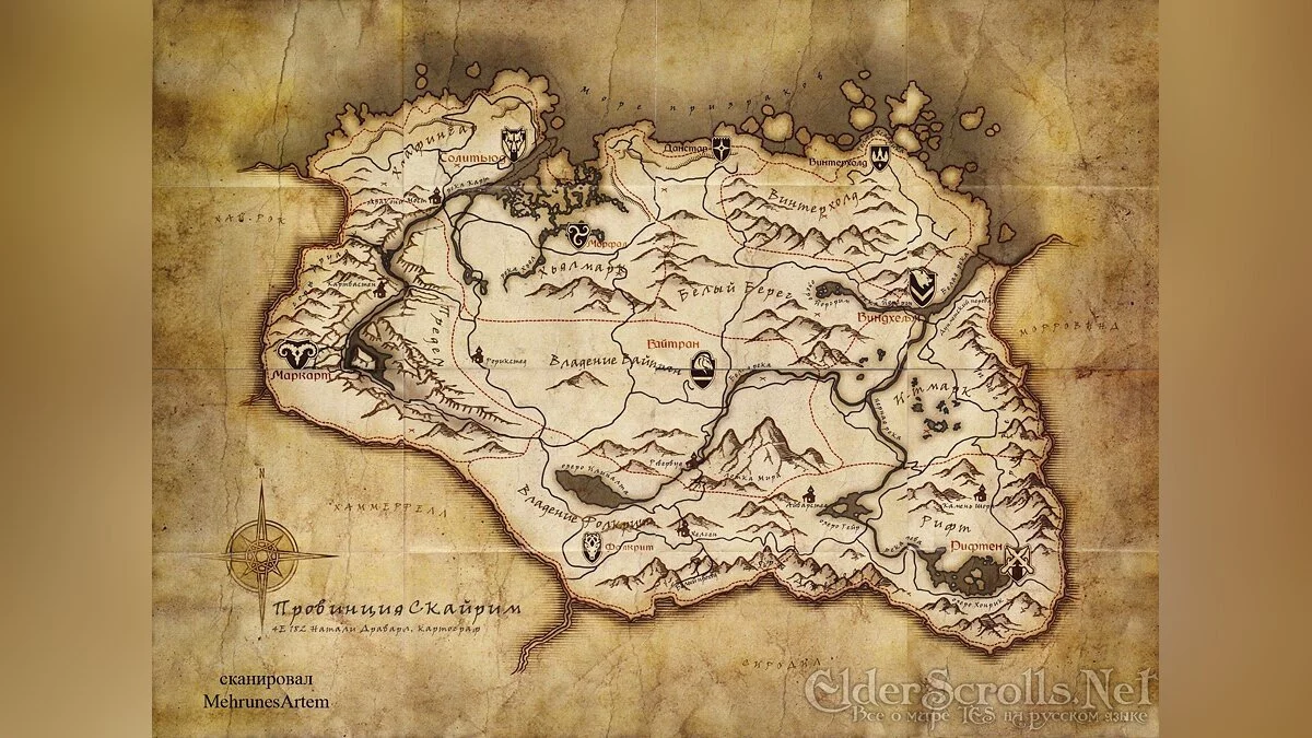 Отечественный ресурс Elderscrolls.net опубликовал скан карты The Elder Scrolls 5: Skyrim. Русифицированные карты "Скайрима" раздавали на выставке "Игромир".