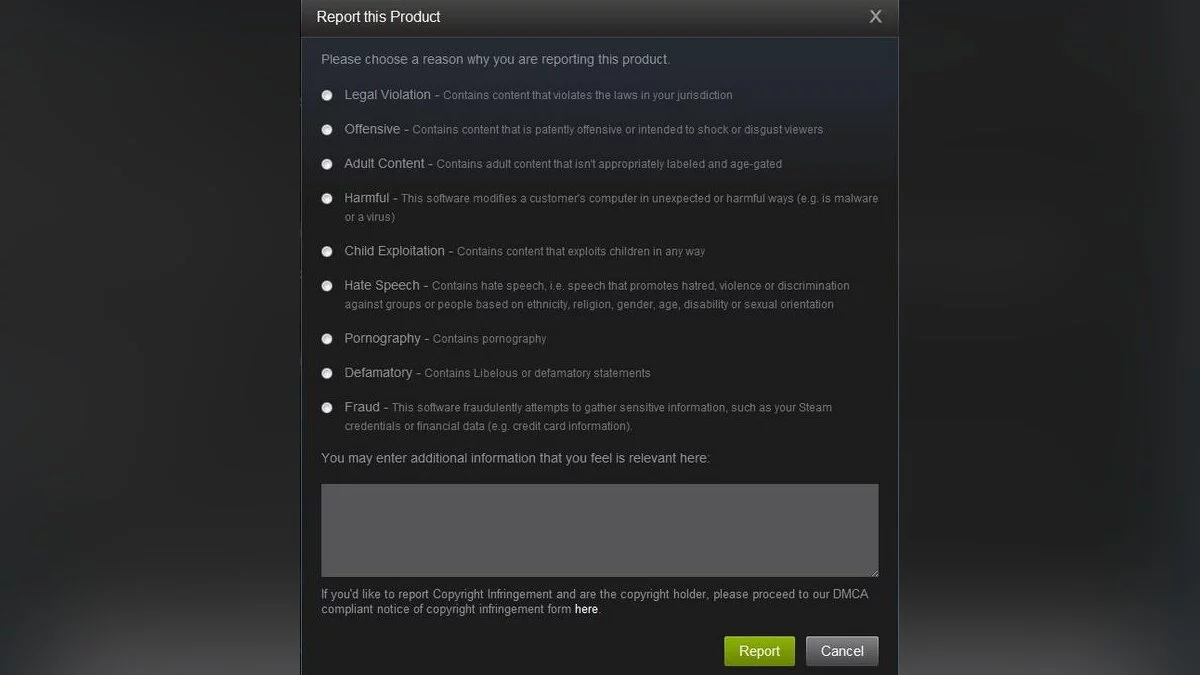 И снова источником информации является сервис микроблогов Twitter. Аккаунт SteamDB опубликовал изображение, на котором мы увидели новый сервис — жалоба на игру.