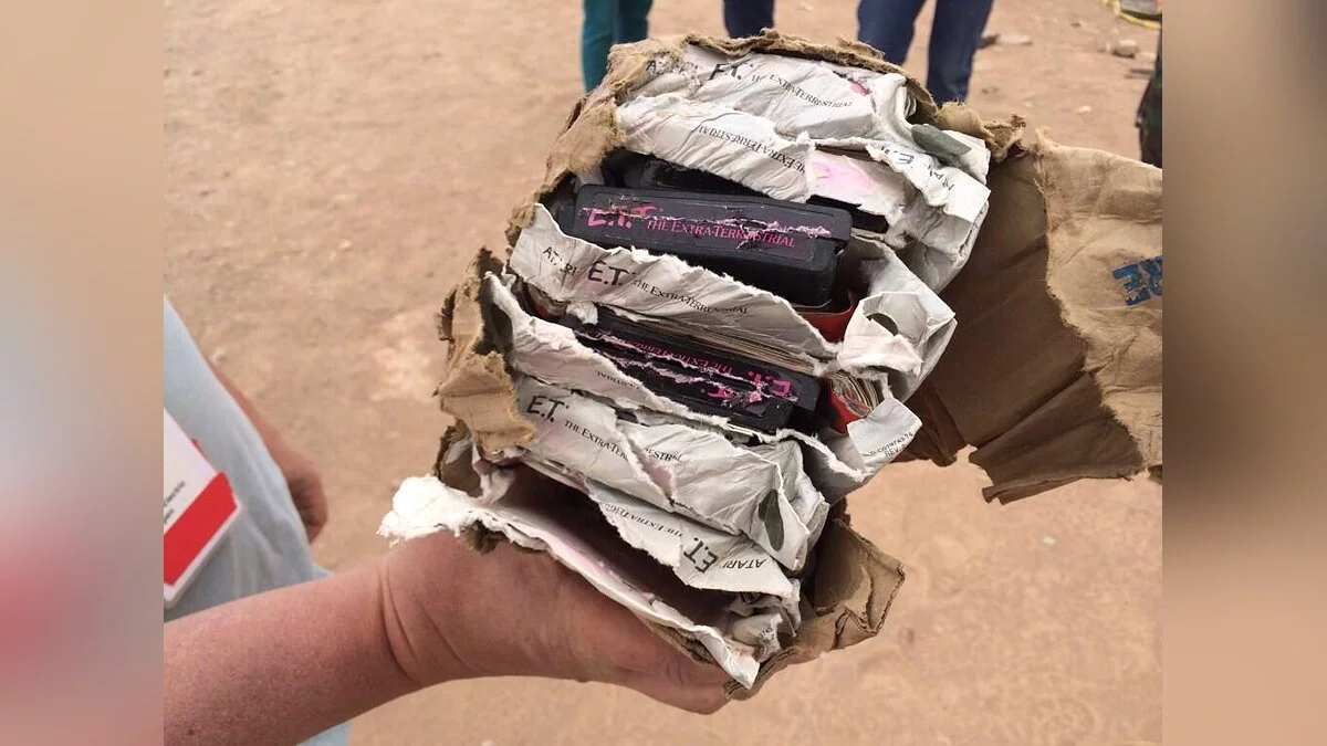 Одной из причин банкротства некогда лучшего производителя видеоигр Atari стала провальная игра E.T. The Extra-Terrestrial по фильму «Инопланетянин» Стивена Спилберга (Steven Spielberg), выпущенная для приставки Atari 2600. Разработчики планировали сделать потрясающую игру, Atari ожидала высоких продаж, однако E.T. The Extra-Terrestrial обернулась для них оглушительным провалом. Миллионы картриджей, проданные людям, были возвращены назад по причине низкого качества игры. По легенде около 3-4 миллионов картриджей было погребено в районе Аламагордо, Нью-Мехико. Сегодня эта легенда подтвердилась. Microsoft, работающая над эксклюзивным документальным сериалом для Xbox Live, раскопала легендарные картриджи Atari.
