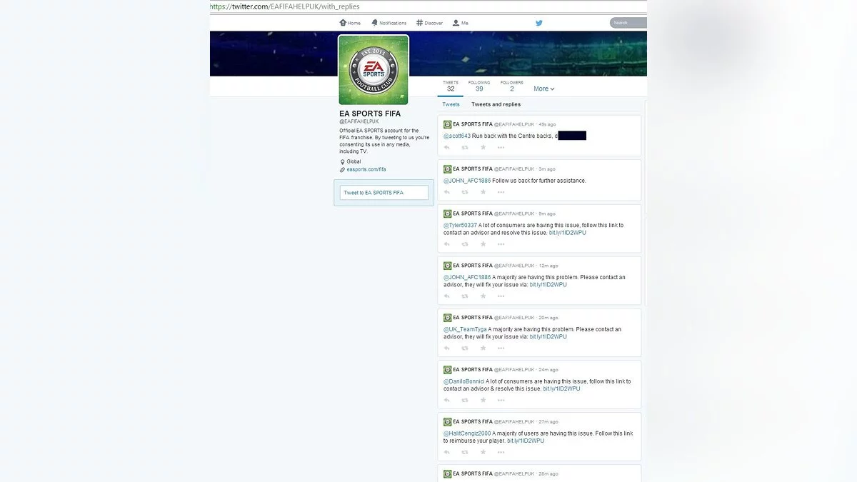 Аккаунты были обнаружены в таких сетях, как Twitter, Facebook и Instagram. Рассмотрим проблему, на примере Twitter. На изображении ниже вы можете видеть поддельный аккаунт техподдержки EA Sports FIFA: