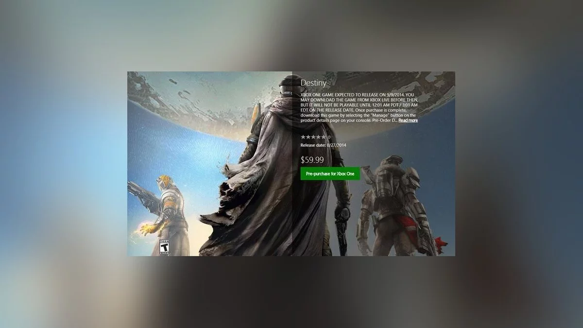 Страница, которая предлагала оформить предварительный заказ Destiny Digital Guardian Edition на Xbox One, упомянула возможность предварительно загрузить игру и дожидаться релиза.