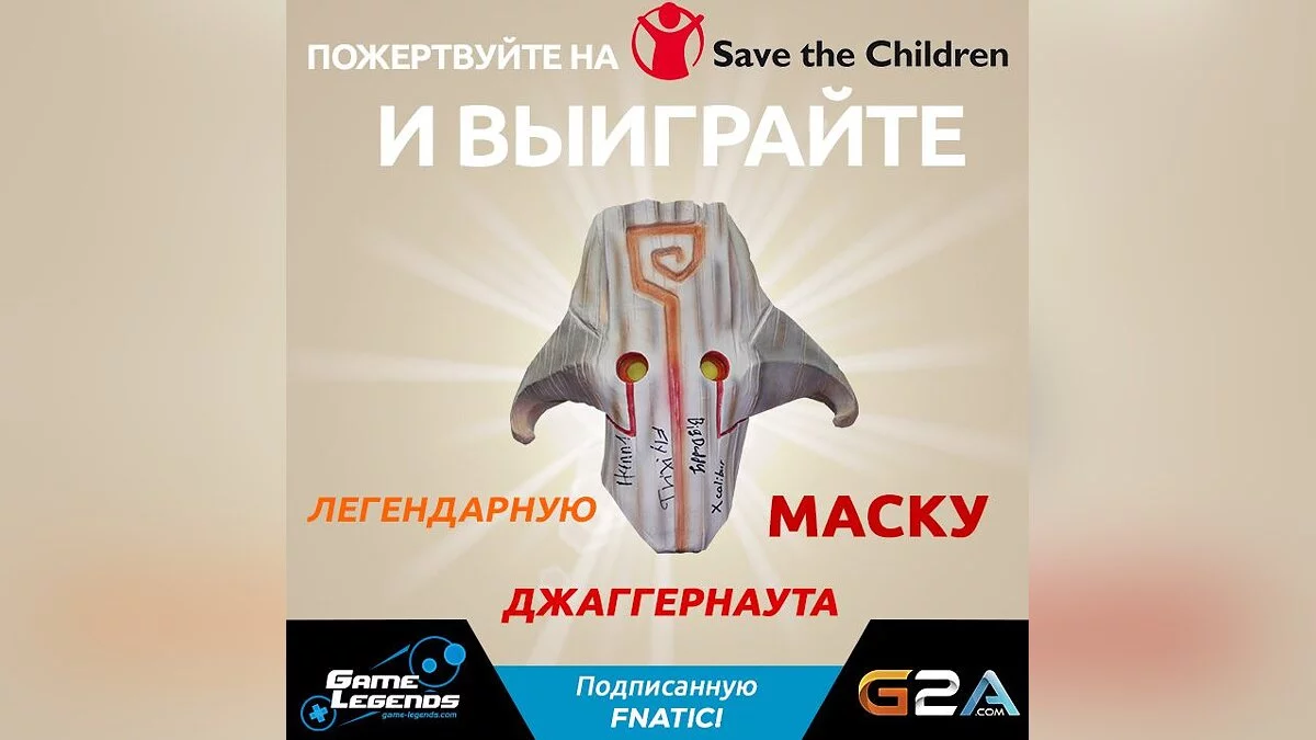 Новая неделя — новое предложение G2A.сom, которое достанется тому, кто пожертвует больше всего денег организации по спасению детей. В этот раз вы можете получить легендарную маску Джаггернаута из DOTA 2.