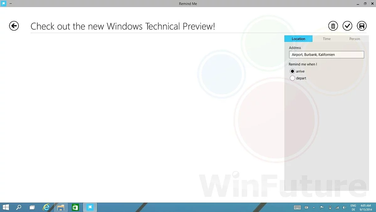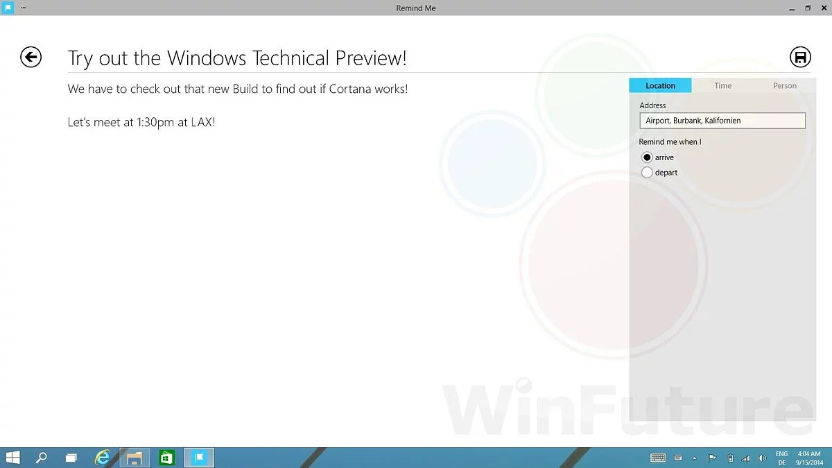 Немецкий ресурс WinFuture показал, как будет выглядеть голосовая ассистентка Cortana в Windows 9 на домашнем компьютере.