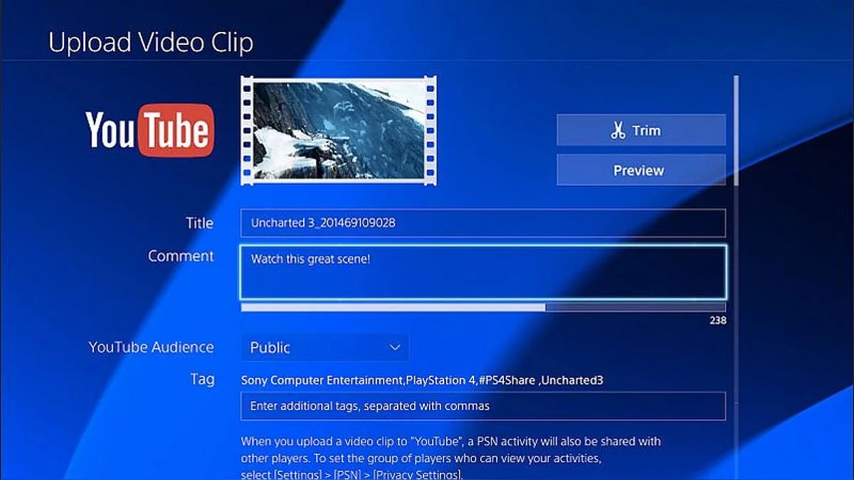Для доступа к экрану загрузки достаточно нажать кнопку «Поделиться» на DualShock 4. Также не возбраняется посмотреть загруженные друзьями ролики в секции «Что нового» в PS4 или мобильном приложении PlayStation.