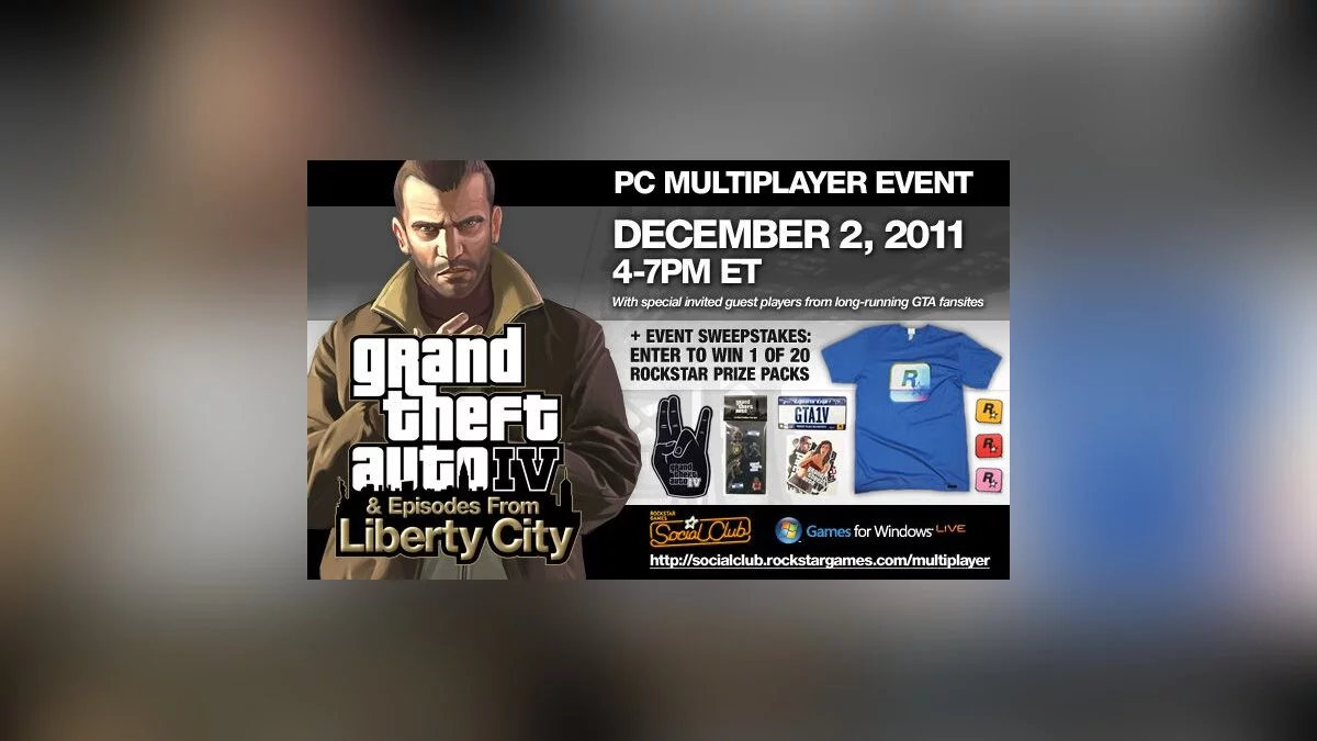 Rockstar сообщила, что собирается провести 2 декабря особое соревнование по мультиплееру Grand Theft Auto 4, чтобы отметить третью годовщину релиза игры на РС.