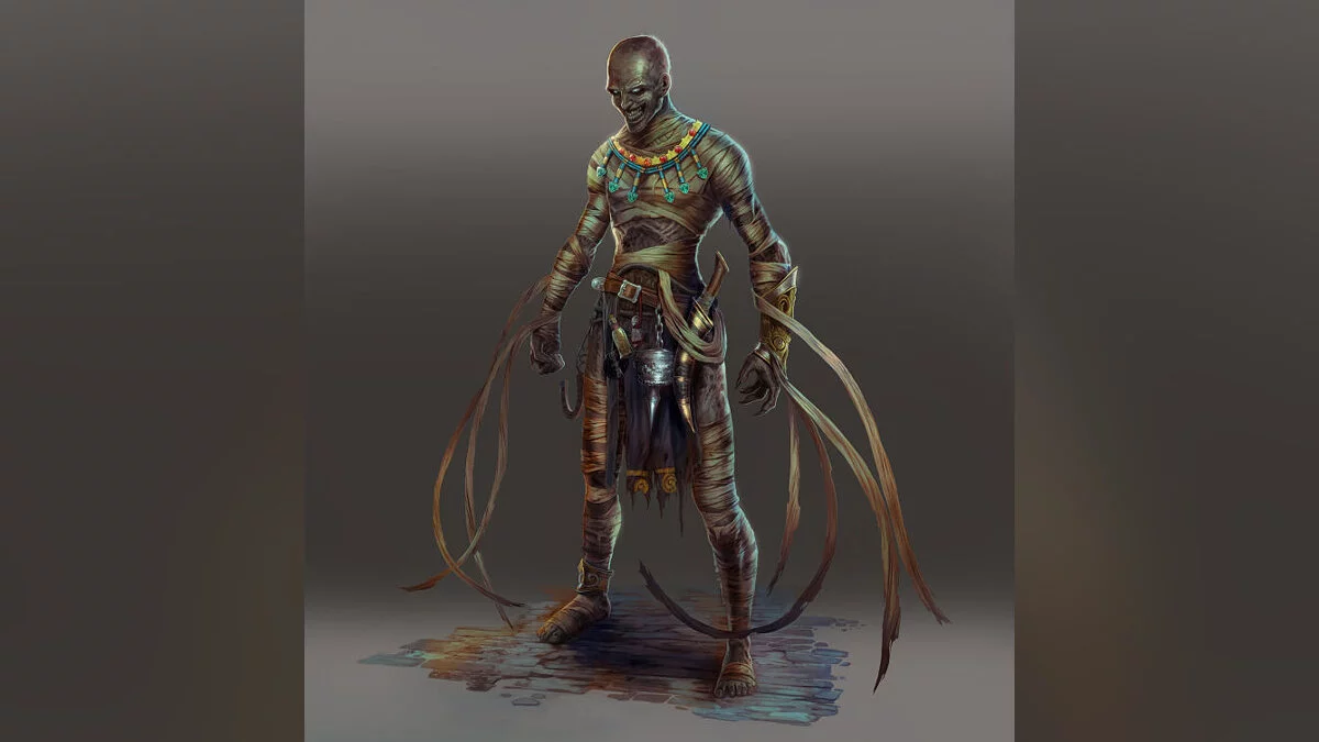 Его зовут Кан-Ра. Это колдун родом из Вавилона, которому 2 500 лет. На него наложили тёмное проклятие, в результате которого гниёт его плоть. Поэтому Кан-Ра опутан бинтами.