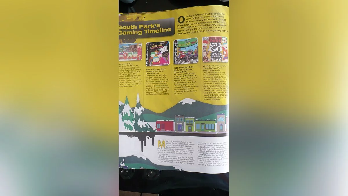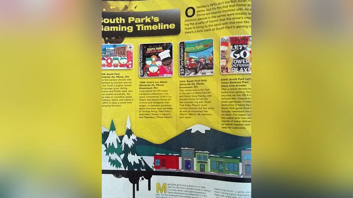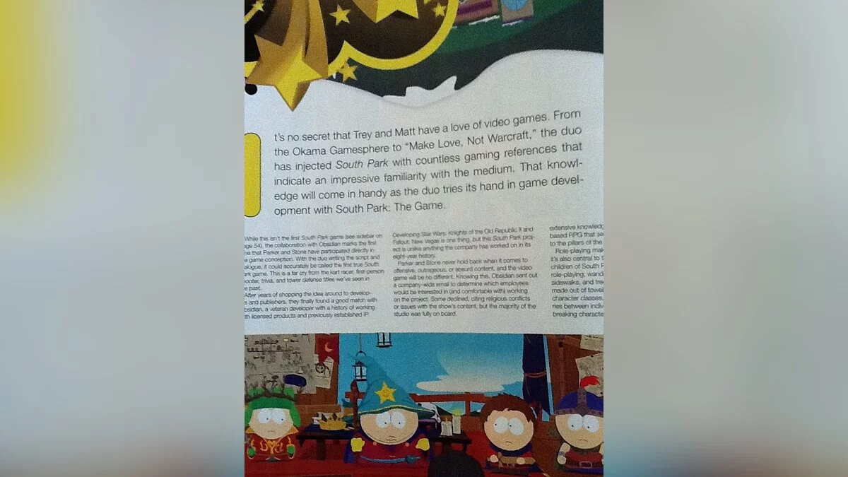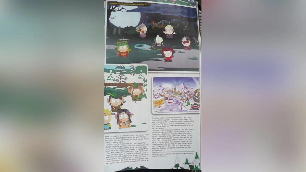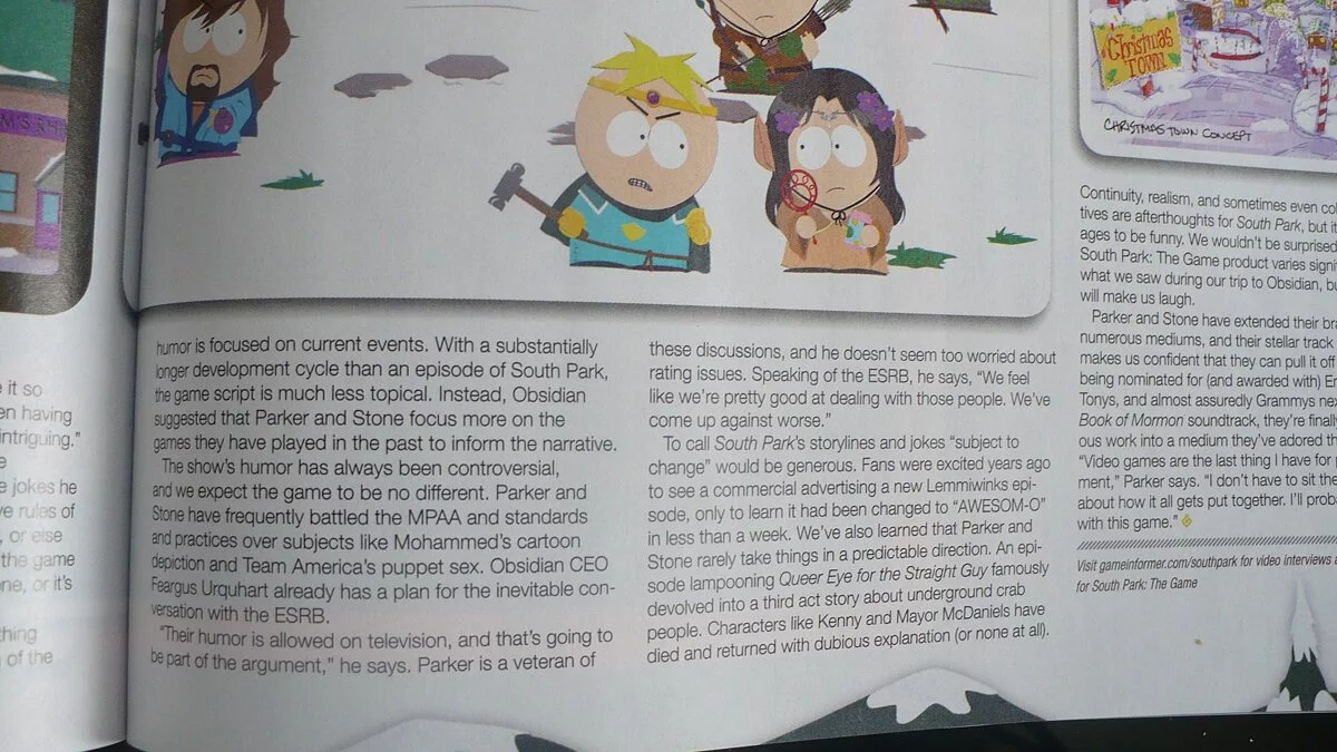 На страницах свежего номера Game Informer появились первые скриншоты South Park: The Game. Если вам не терпится посмотреть их, то предлагаем вашему вниманию фотографии страниц этого самого журнала.Некоторые фотографии страниц журнала повторяются, чтобы можно было лучше прочитать текст. Почему-то вспомнился институт, когда лекции перед экзаменом так фотографировал.