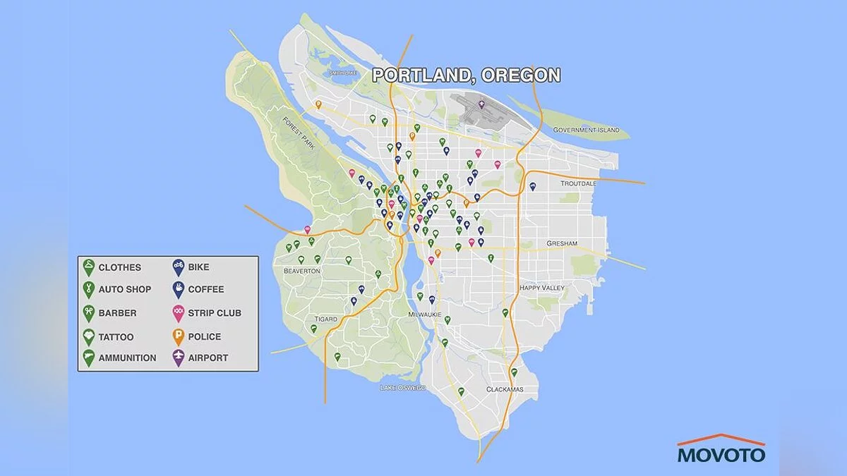 Компания сравнила Портленд и Лос-Сантос, чтобы доказать, что Портленд является идеальным городом для GTA. В нём очень много стрип-клубов, полицейских участков, кофейных магазинов, точек, продающих огнестрельное оружие и т.д.