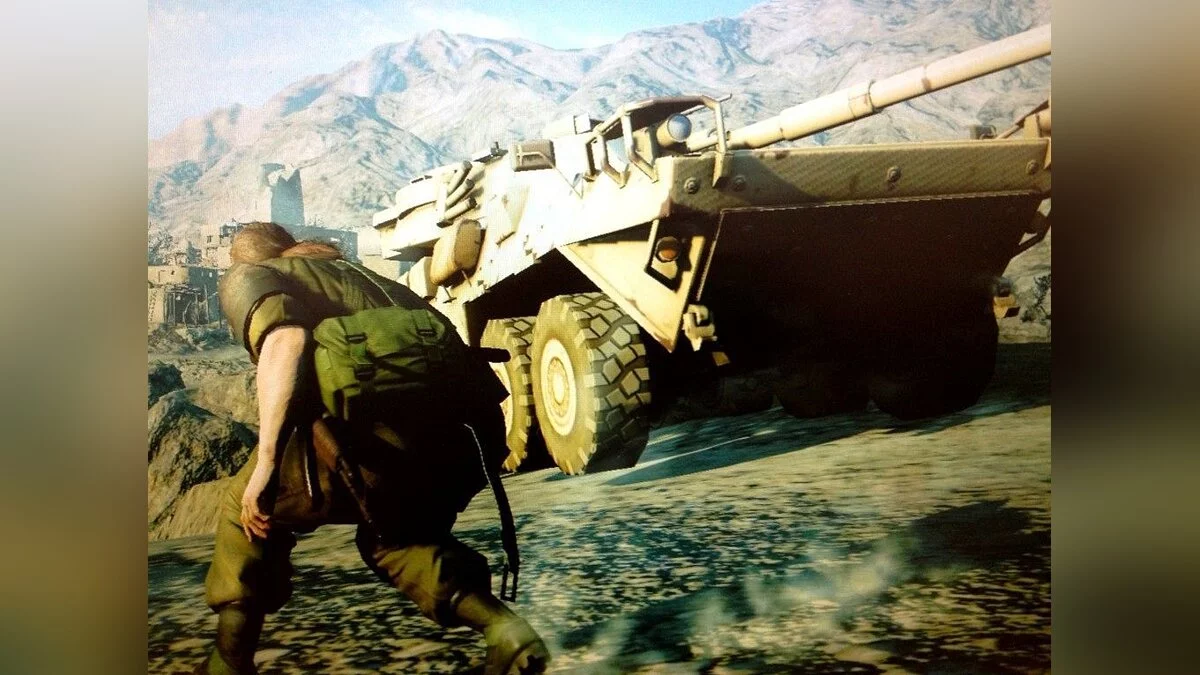 На первой картинке мы видим солдата крадущегося рядом с танком. Глядя на окружающую локацию можно предположить, что действие разворачивается где-то на востоке.