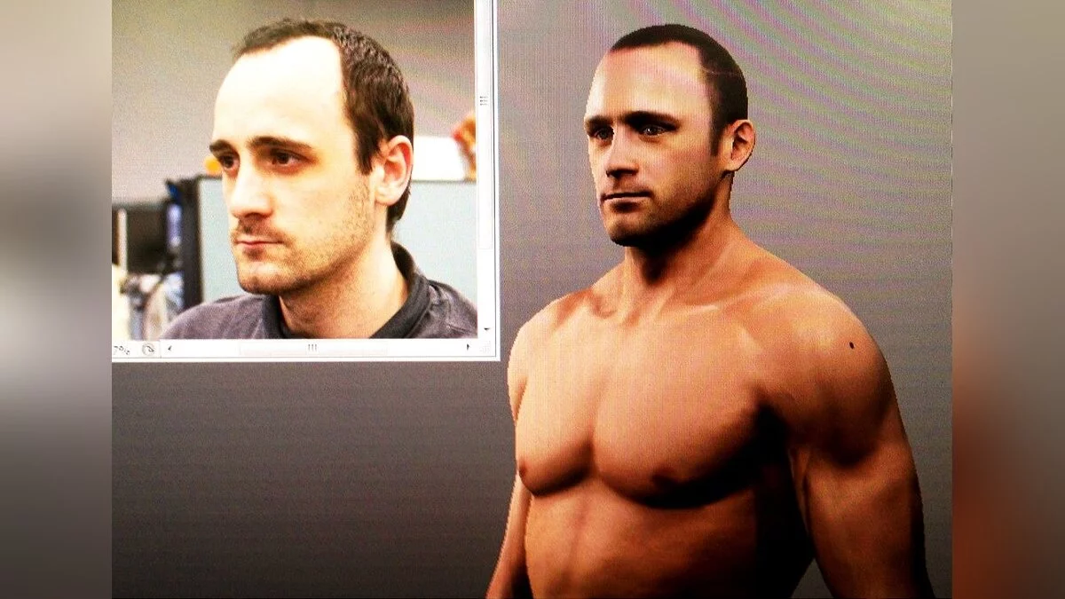 На этот раз на картинке показан один из сотрудников KP вместе со своим виртуальным воплощение, созданным на движке Fox Engine.