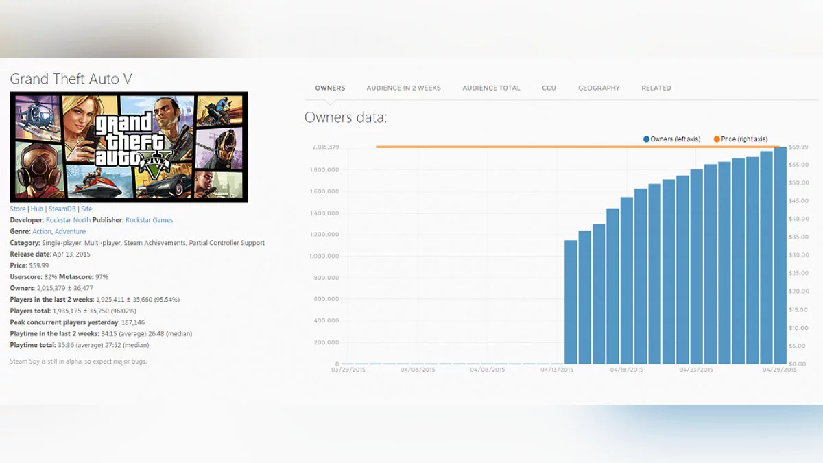 Несмотря на многочисленные переносы, продажи компьютерной версии Grand Theft Auto 5 превысили отметку в два миллиона копий — и это не считая тех, которые были проданы за пределами сервиса цифровой дистрибуции Steam. Такую статистику обнародовал недавно запустившийся сервис SteamSpy.