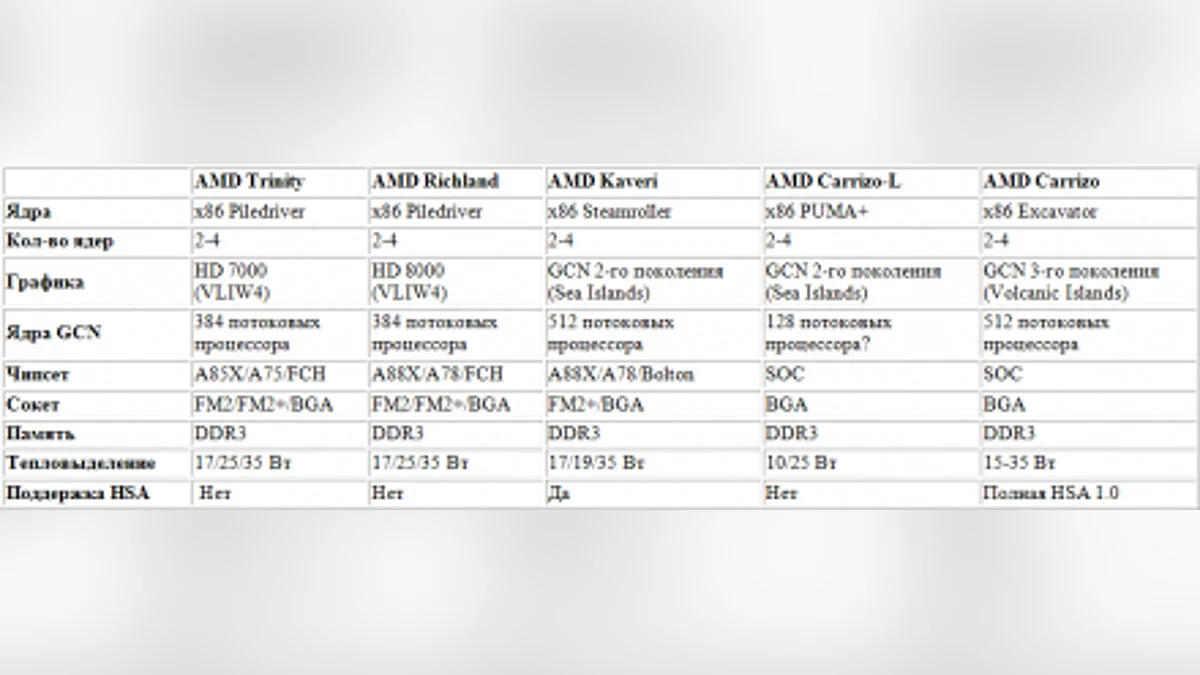 Среди шестого поколения процессоров AMD FX, A10 и A8 ожидаются следующие модели: FX-8800P, PRO FX-8800B, A10-8700P, A8-8600P, A6-8500P, PRO A10-8700B, PRO A8-8600B, PRO A6-8500B, RX-418GD, RX-216GD. Если вы запутались в характеристиках последних APU от AMD, то вот вам табличка: