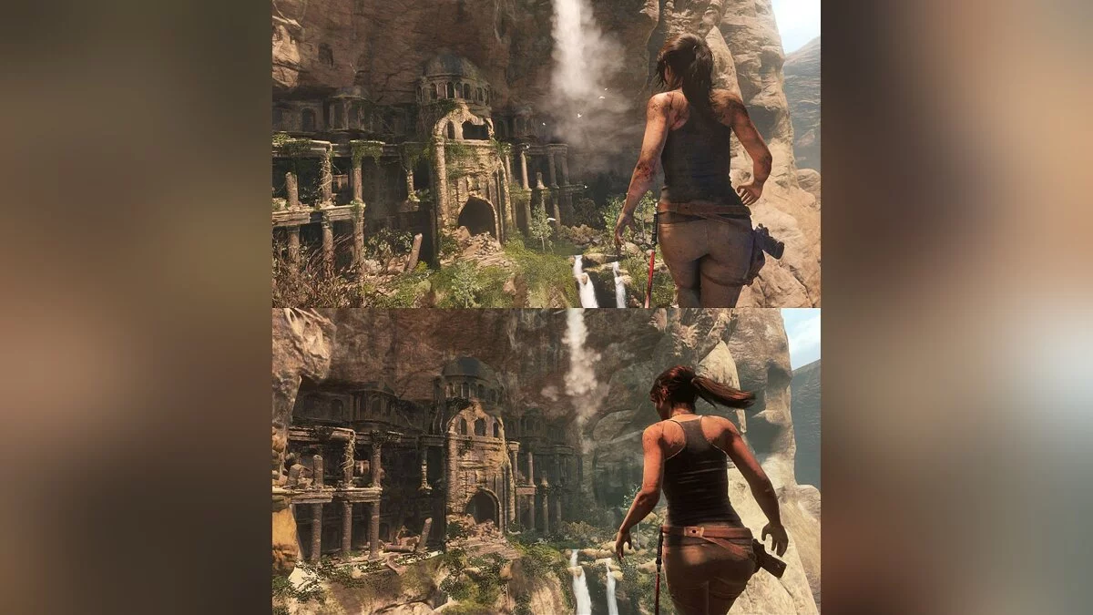 Лара одета так, как в прошлой Tomb Raider, и только её задняя часть выглядит одинаково в обеих версиях. Rise of the Tomb Raider ожидается 10 ноября на Xbox.