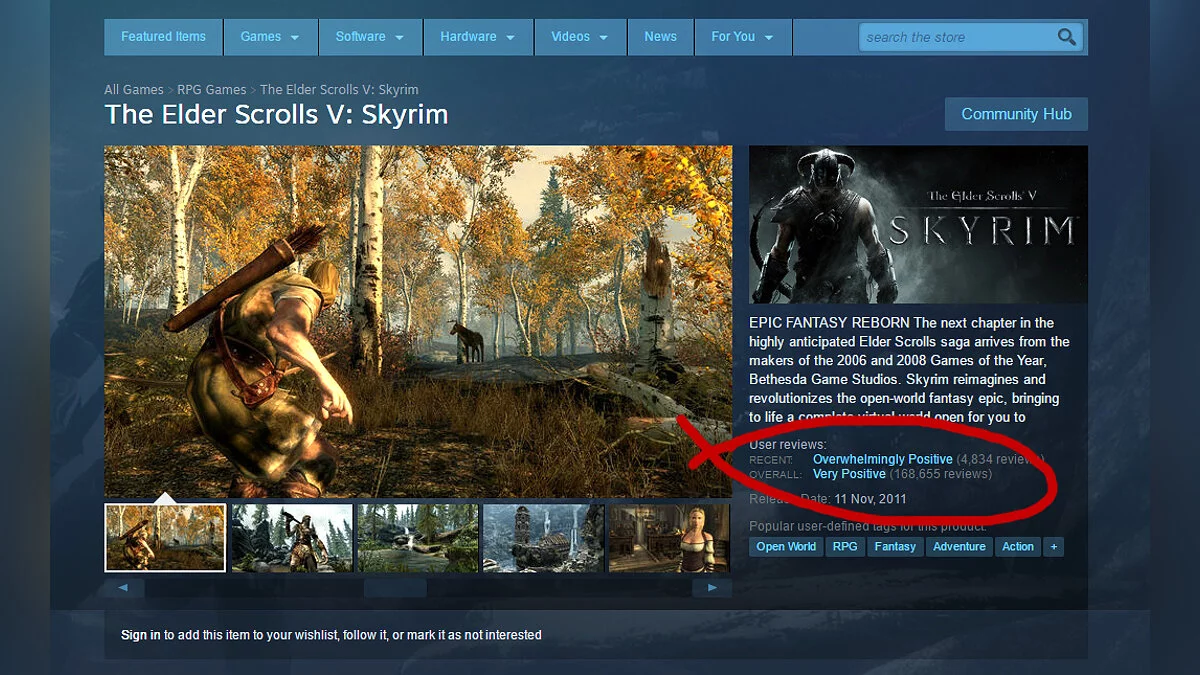 На странице той или иной игры в Steam теперь не один раздел с обзорами, а два — один выполнен на основе всех обзоров, другой за последние 30 дней. Таким образом, можно увидеть изменение оценки игры за весь период ее существования. Кроме того, итоговая оценка продукта отныне основывается на обзорах, опубликованных за последний месяц. Если никто не писал обзоры за это время, итоговая оценка будет выставлена на основе всех существующих в Steam мнений.