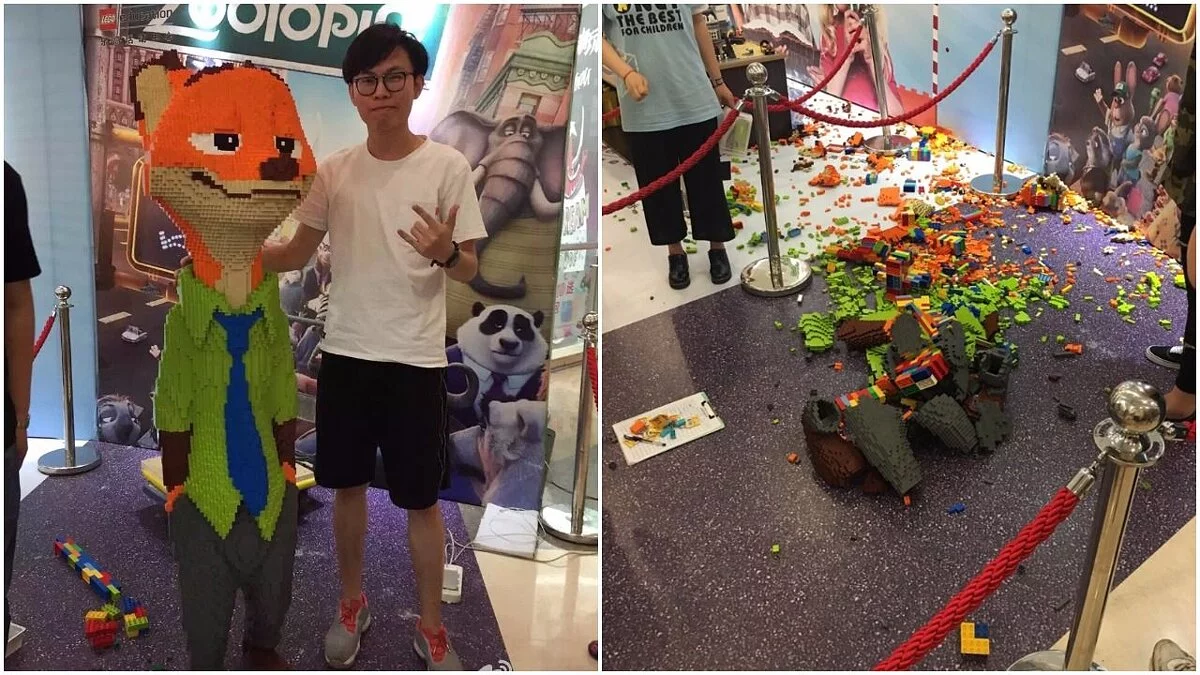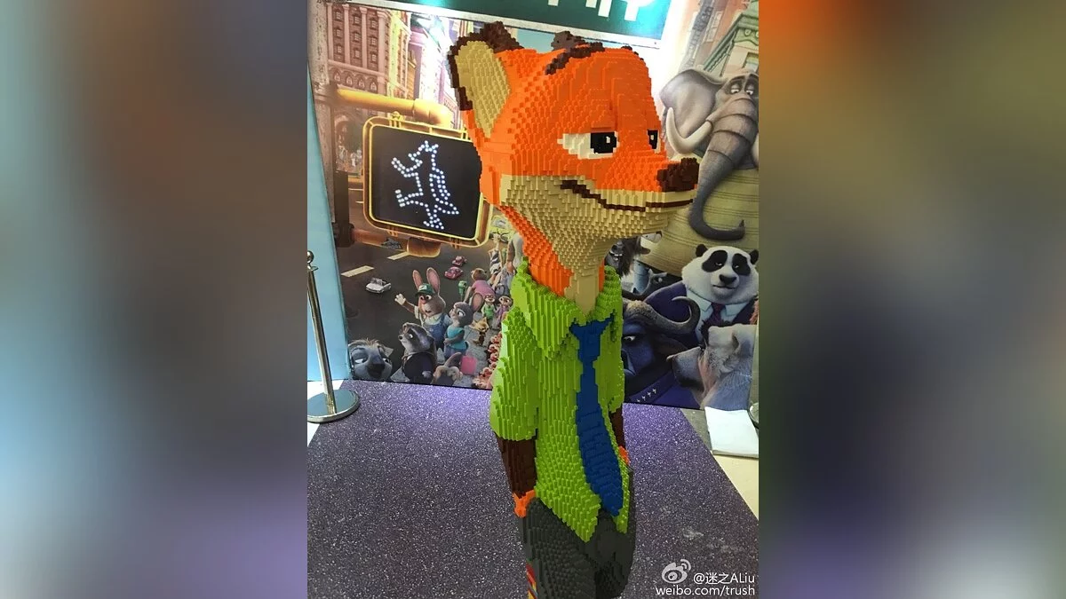 Статую лиса Ника Уайлда установили в одном из магазинов Китая. Несмотря на то, что постройка из LEGO находилась за канатами, которые должны были сдерживать желание детей разбить огромную фигурку, какой-то ребёнок проник за их пределы и беспощадно разбил титанический труд паренька Чжао, потратившего на эту постройку три дня и тысячи долларов.