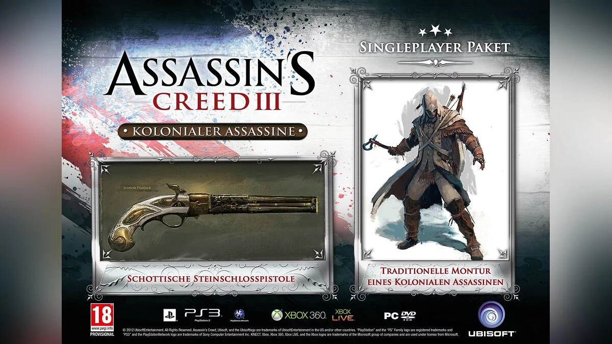 Оформившие предзаказ в «Амазоне» получают колониальную экипировку ассасина, кремниевый пистолет и ручной топор.