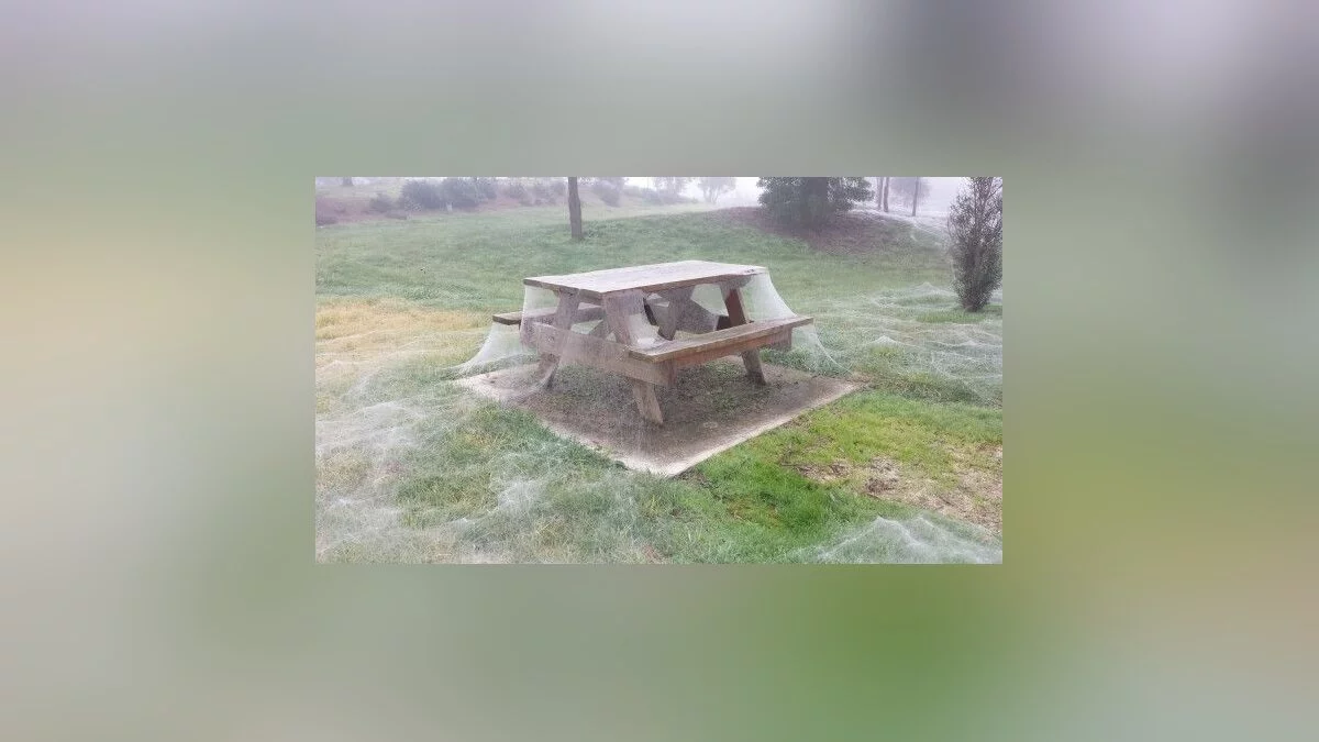 Из-за сильных дождей и наводнений, пауки должны искать себе безопасные места. Парк в Виктории оказался именно таким, вследствие чего туда пришли тысячи пауков.