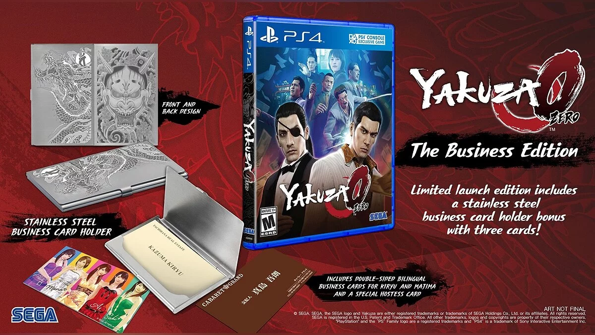 Вместе с этими новостями Sega рассказала о комплекте предзаказа на физические копии Yakuza 0. Внутри коробки можно будет найти стальной кейс для пластиковых карт, включающий бизнес-карты Tachibana Real Estate, Cabaret Grand и карту хостесс-клуба. Поклонники смогут получить это в свои руки 24 января только для PS4.