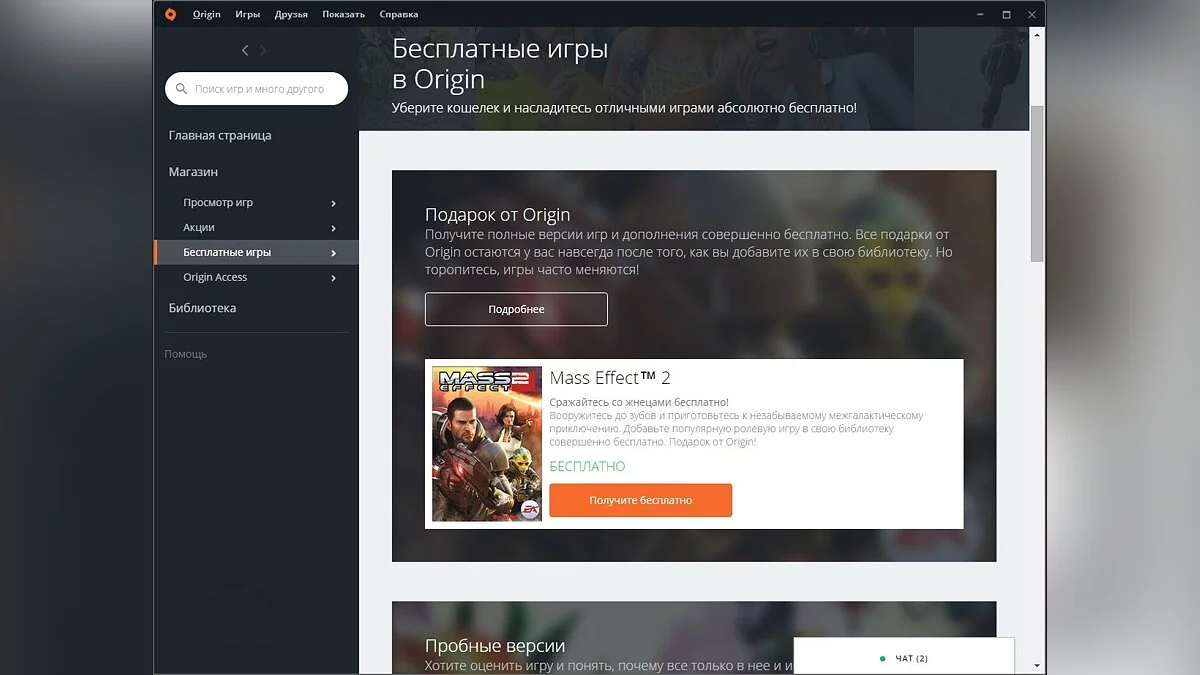 Для этого запустите свой клиент Origin, найдите категорию «Бесплатные игры» в правом меню и выберете кнопку «Получить бесплатно»: