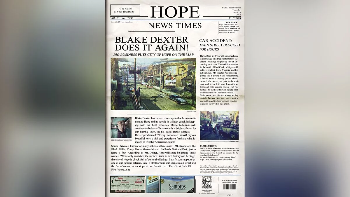 Компания-разработчик IO Interactive представила первое издание газеты Hope News Times, которая связана с cюжетом Hitman: Absolution.