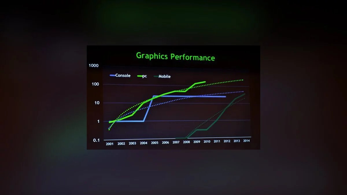 По оценке компании NVIDIA, которая занимается производством видеокарт, в скором времени мощность мобильных устройств (а точнее, их графических процессоров) станет на одну планку с мощностью видеокарт текущих игровых систем.