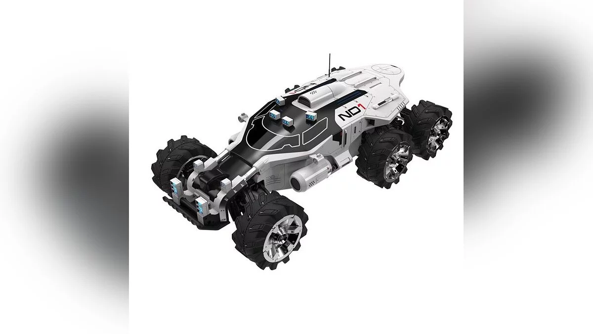 Начнем с самого интересного. Моделька называется Nomad ND1 и является точной копией игрового транспортного средства Кочевник из Mass Effect: Andromeda. Она построена в масштабе 1 к 18. Дистанционное управление осуществляется при помощи смартфона под управлением Android или iOS, для запуска потребуется специальное приложение.