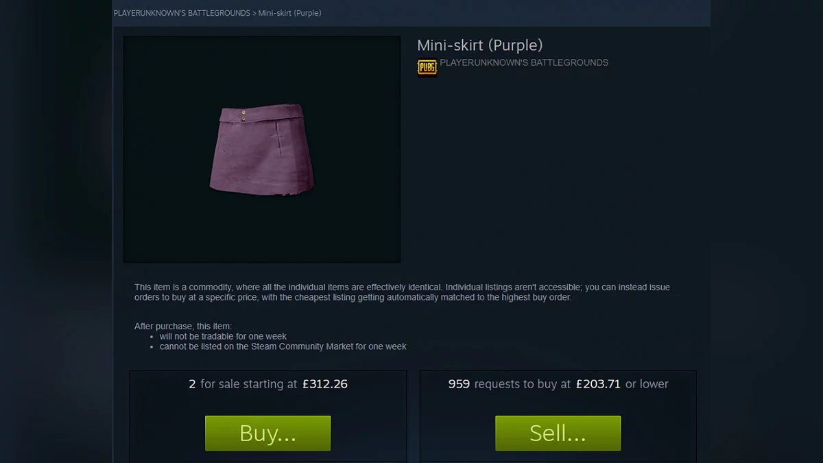 Мини-юбку, косметический предмет из Playerunknown's Battlegrounds, продали более чем за 300 фунтов стерлингов (почти 24 тысячи рублей) на торговой площадке Steam.