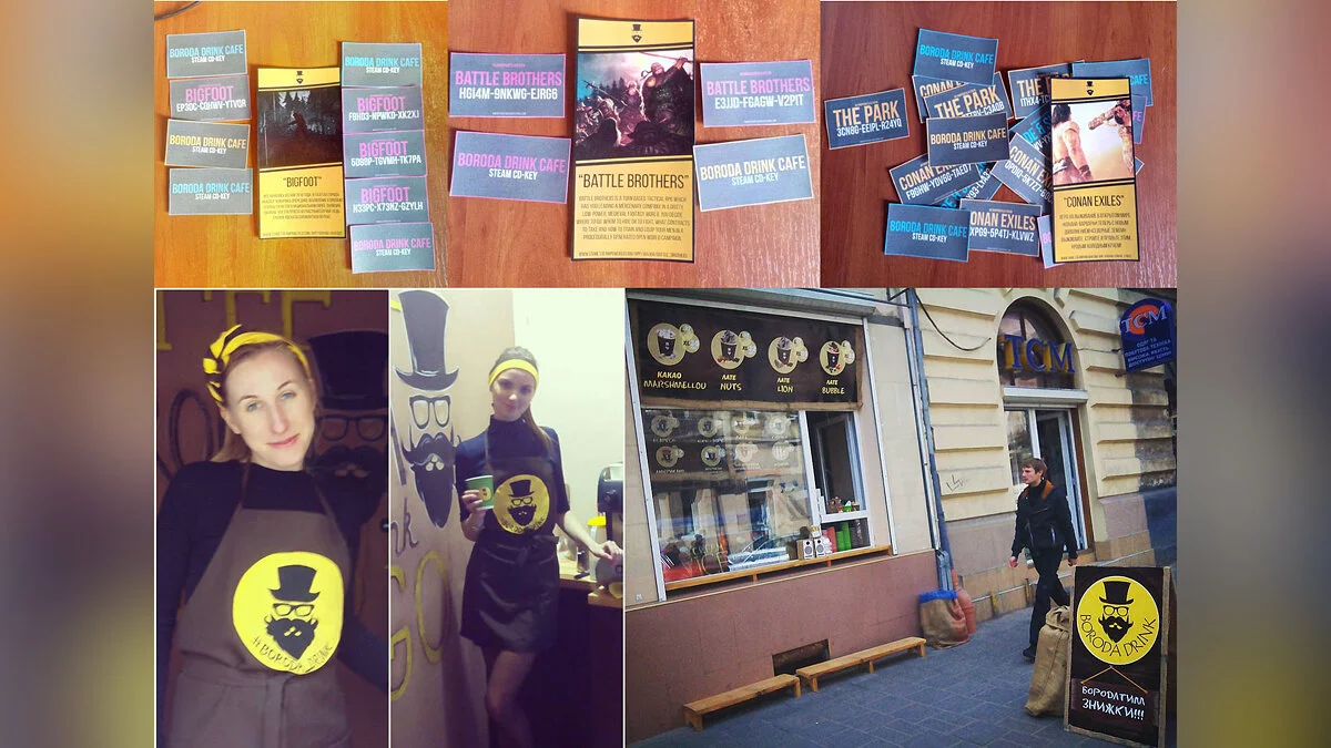 Дмитрий спросил у Джейкоба, не мог бы тот тоже прислать ему ключи своего тайтла, чтобы затем раздавать их в кофейне. Взамен он будет продвигать игру. К письму прилагались даже фотографии заведения с примерами других тайтлов.