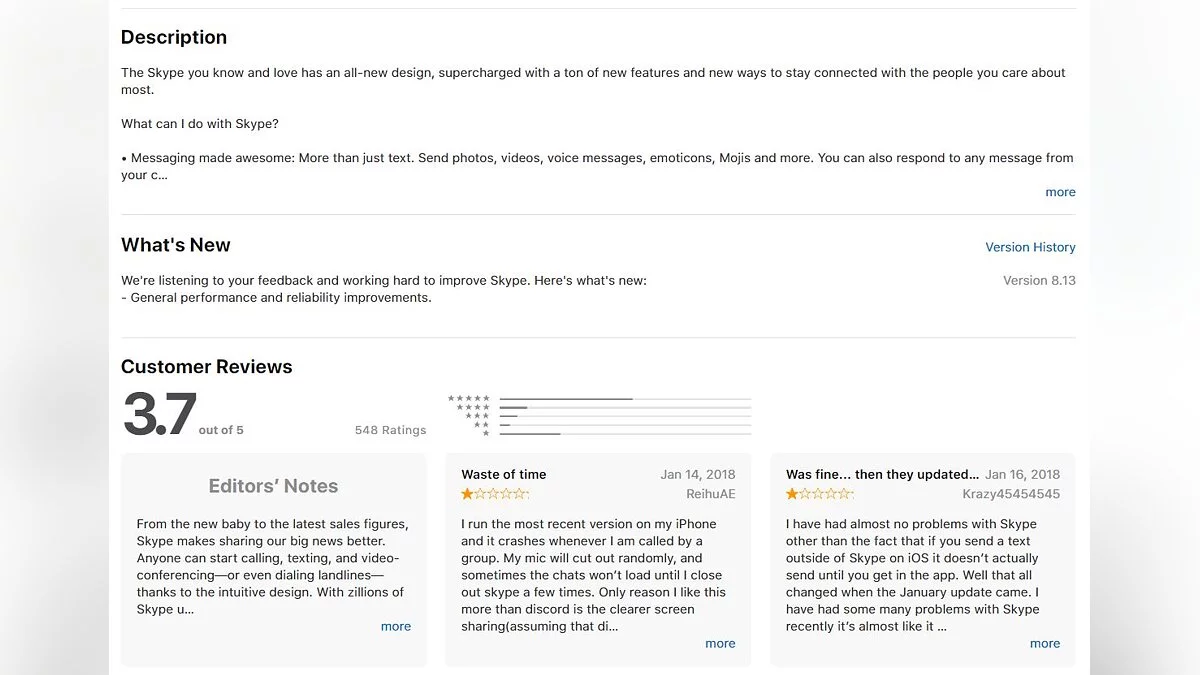 Однако веб-версия данного магазина выглядела достаточно архаично на фоне iOS 11 и уже давно не обновлялась. Следовательно, интерфейс был очень значительно изменен. Желающие могут рассмотреть большее число более качественных скриншотов любого приложения, основное внимание уделено отзывам пользователей, а также последним изменениям, внесенным разработчиком в свое приложение. Блоки с описанием и другой информацией теперь пересортированы сообразно их важности.