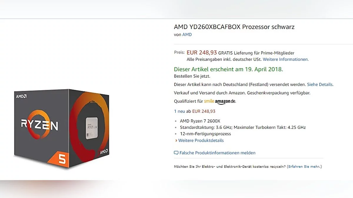 Начало продаж процессоров Ryzen 7 2700X, Ryzen 7 2700, Ryzen 5 2600X и Ryzen 5 2600, по информации Amazon, запланировано на 19 апреля этого года. Ожидается, что процессоры будут работать на материнских платах с чипсетами X470 и B450.