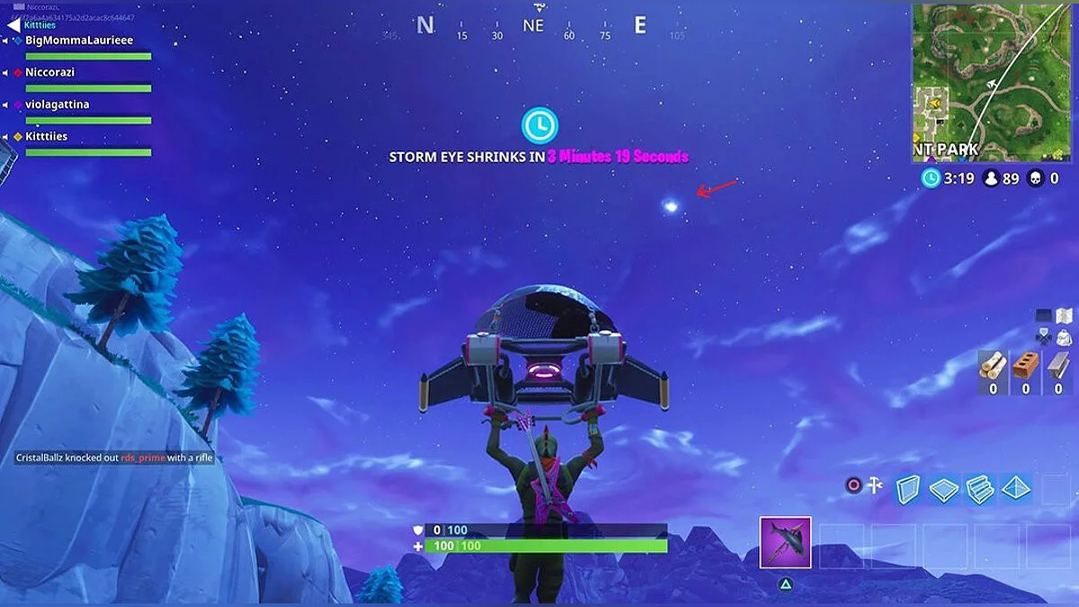 Сразу несколько игроков опубликовали на Reddit тему, в которой довольно убедительно доказали, что в настоящее время по «небу» игры движется метеорит, а конечная точка его падения, похоже, район Tilted Towers. Их внимание привлек синий, пульсирующий объект, движущийся по горизонту игры в нарушение законов физики, однако он явно набирал размер и к нему добавился характерный шлейф.