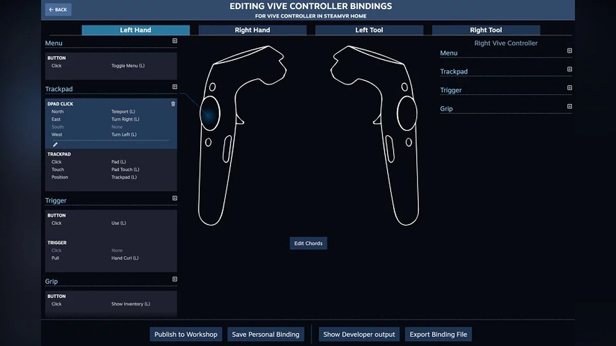 Благодаря новой системе SteamVR Input пользователи смогут настроить управление для каждой отдельной игры в индивидуальном порядке. После создания профиля его можно будет сохранить и включить в любой момент в самой игре.