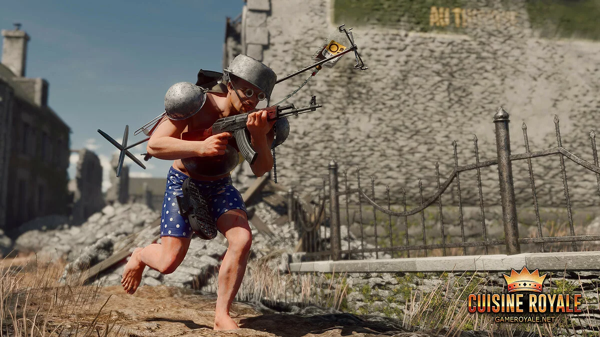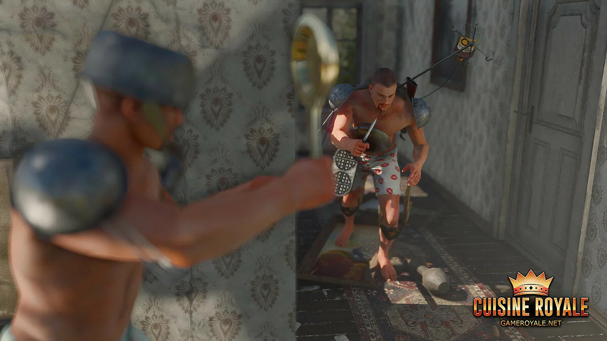 Отличительная черта Cuisine Royale — конечно же оружие. Во время битвы игроки смогут найти не только винтовки и пистолеты, но и множество кухонной утвари. На поле боя лежат кастрюли и дуршлаги, из которых можно сделать грозный доспех. Конечно, по прямому назначению сковородку все еще нельзя использовать, а вот огреть недруга по голове — вполне.