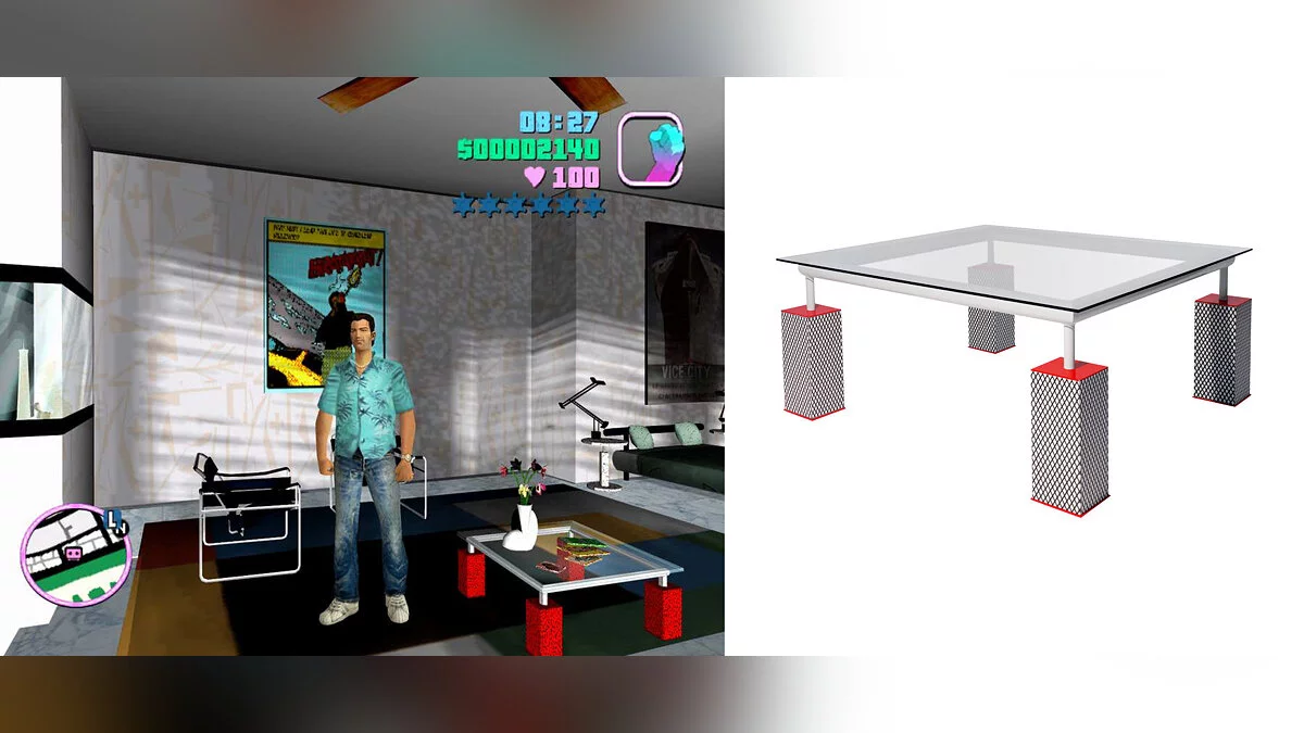 Русский геймер Глеб Меркулов опубликовал свое небольшое расследование в Твиттере, в котором он показал, что часть мебели из Grand Theft Auto: Vice City, а именно из номера главного героя в отеле «Оушен-Вью», можно приобрести в реальной жизни. Только стоит эта мебель очень много. Даже слишком много.