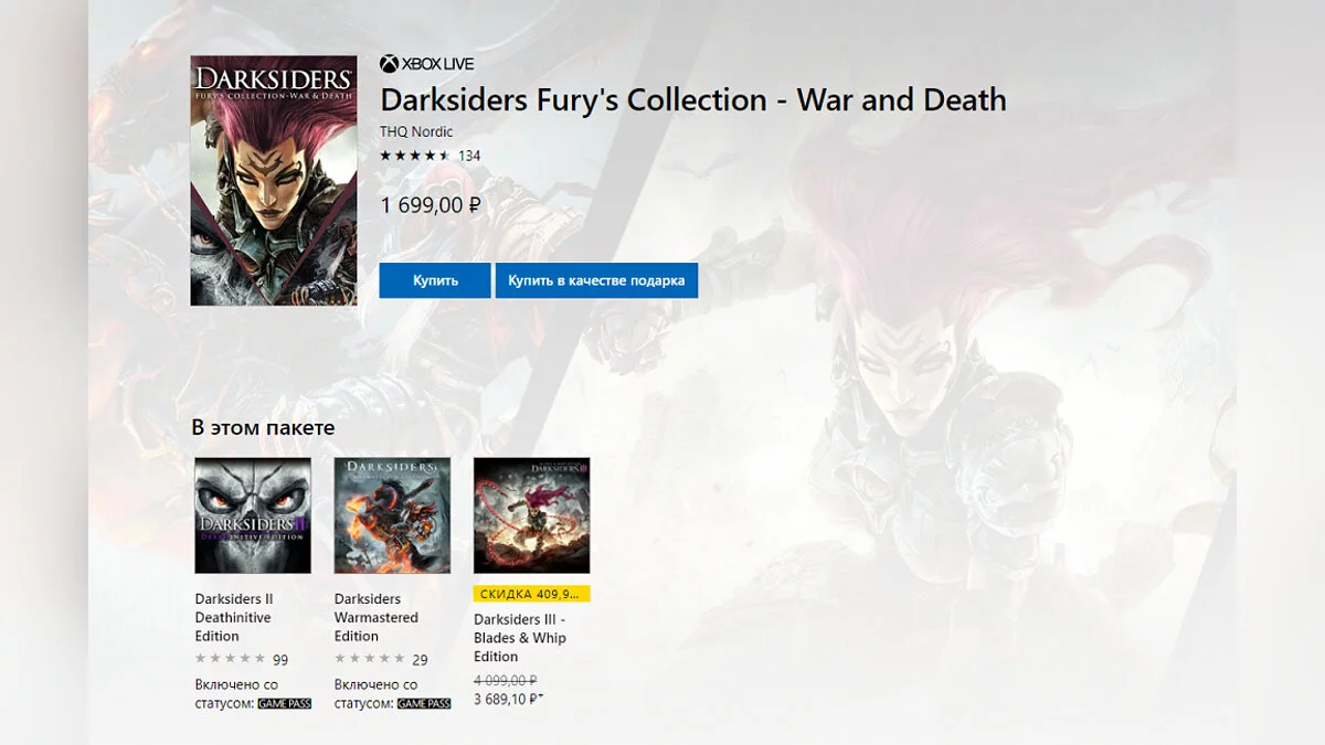 Примечательно, что сейчас комплект продается по цене в 1700 рублей, в то время как Darksiders 3 продается отдельно за 3 689 рублей с учетом скидки.