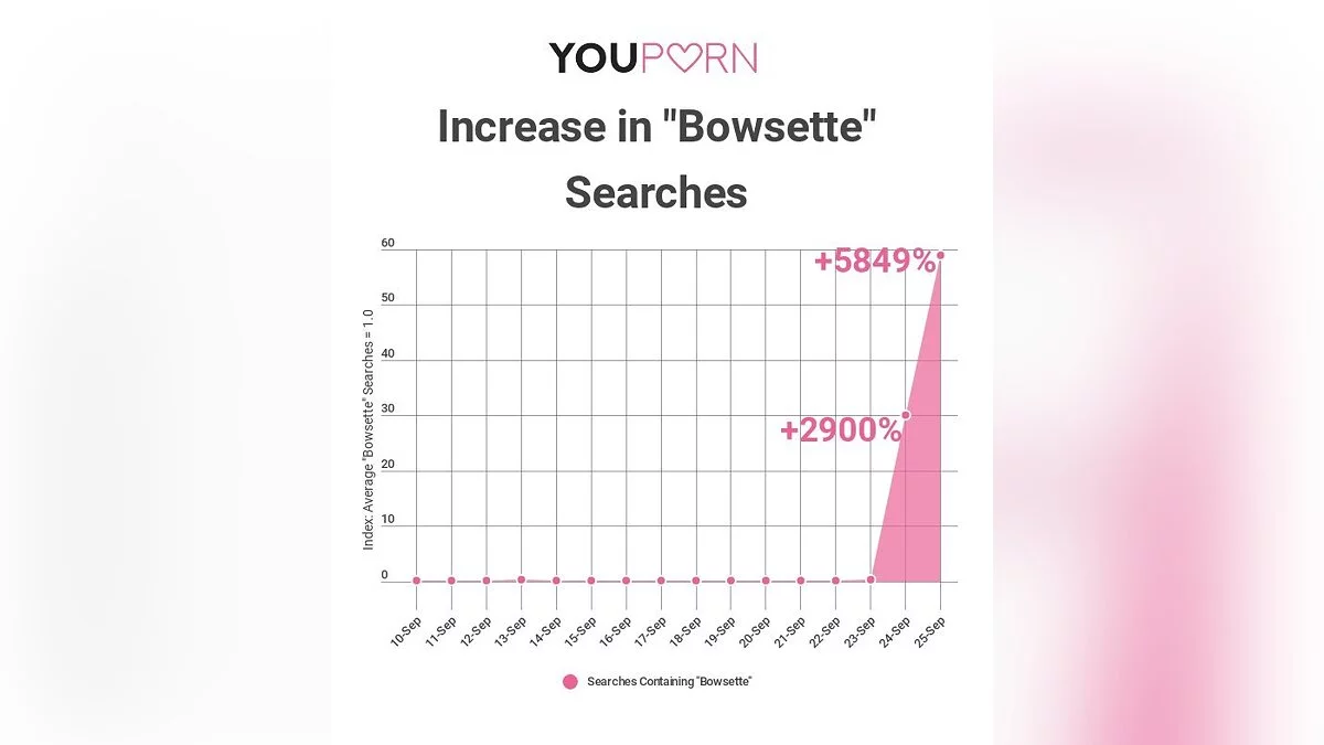 По данным порносайта YouPorn, количество запросов по Боузетте 24 сентября увеличилось на 2 900 %, а на следующий день и вовсе на 5 849 %.